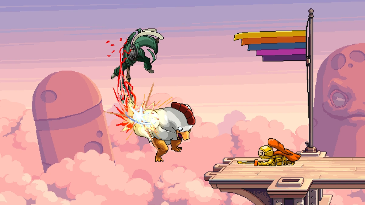 Aine is one of the Assist characters in Fraymakers, and she is one of the twenty Assists available at the launch of its Early Access release. When called upon, she delivers a fast four-hit combo with her sword, her main attack in Renaine. The first two hits deal 3 damage each, the third hit deals 4 damage, and the final hit deals 6 damage with forward knockback. Though Aine deals low damage and knockback by herself, her attack comes out quickly and lasts a considerably long time, allowing for the player to follow up with a combo or KO.