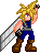 Cloud Strife (クラウド・ストライフ) is the protagonist of the game FINAL FANTASY VII. He is a mercenary and former member of Shinra Troops, an elite military unit operating under the Shinra Company. Cloud, under his KINGDOM HEARTS incarnation, makes an appearance in the short-lived A Super Mario World series. He is playable character in Super Smash Flash, based on his FINAL FANTASY VII appearance. He wields the Buster Sword, originally wielded by his best friend, Zack Fair.