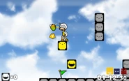The level takes place on a large platform of Steel Blocks with the mango suspended over it and a wall to its right. The player is challenged to explore the level to find the Yellow Blocks required to reach it. They must first venture right to find two Yellow Blocks on a small platform they can access by using Jam's hammer boost. These must be destroyed by Fury, and after returning to the previous platform, the player must use Yeah to place the blocks in order to reach the mango.