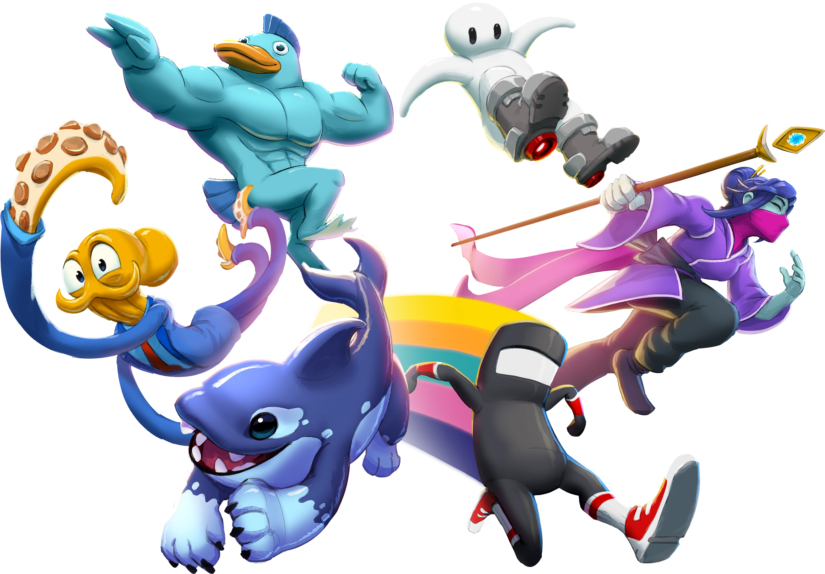 Fraymakers is currently planned to feature at least ten characters hailing from differing independent games, nine of which are included in the base game. Each character is designed to have a unique and distinct playstyle while also carrying attacks from their source franchises.