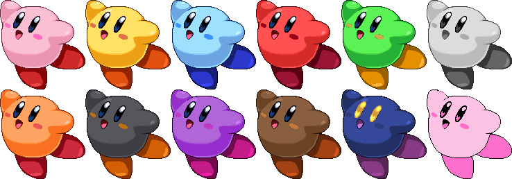 Kirby is a veteran character in Super Smash Flash 2. He was one of the first four playable characters in SSF2, alongside Mario, Ichigo, and Lloyd. Unlike in Super Smash Flash, both he and Meta Knight are now separate characters. His sprites are custom-made and based on his appearance in Super Smash Bros. for Nintendo 3DS and Wii U and his voice clips, provided by Makiko Ohmoto, are taken from the same game. However, his moveset is taken directly from Super Smash Bros. Brawl.