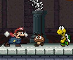A Koopa Troopa and a Goomba facing Mario on Mushroom Kingdom.