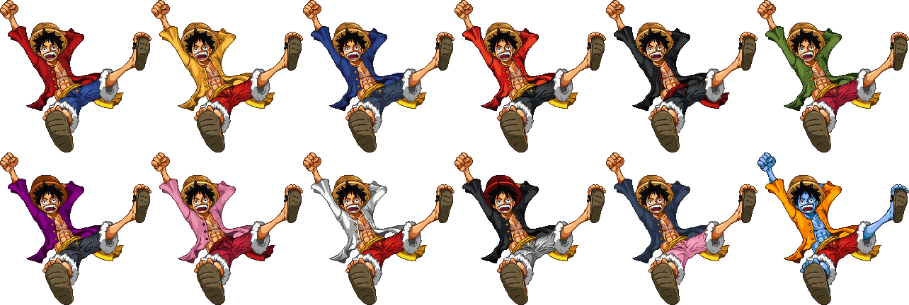 - Luffy, along with Mario, King Dedede, Bandana Dee, Lloyd, and Simon, are the only characters so far to wear their default costumes in Team Battle when they are on the red team.