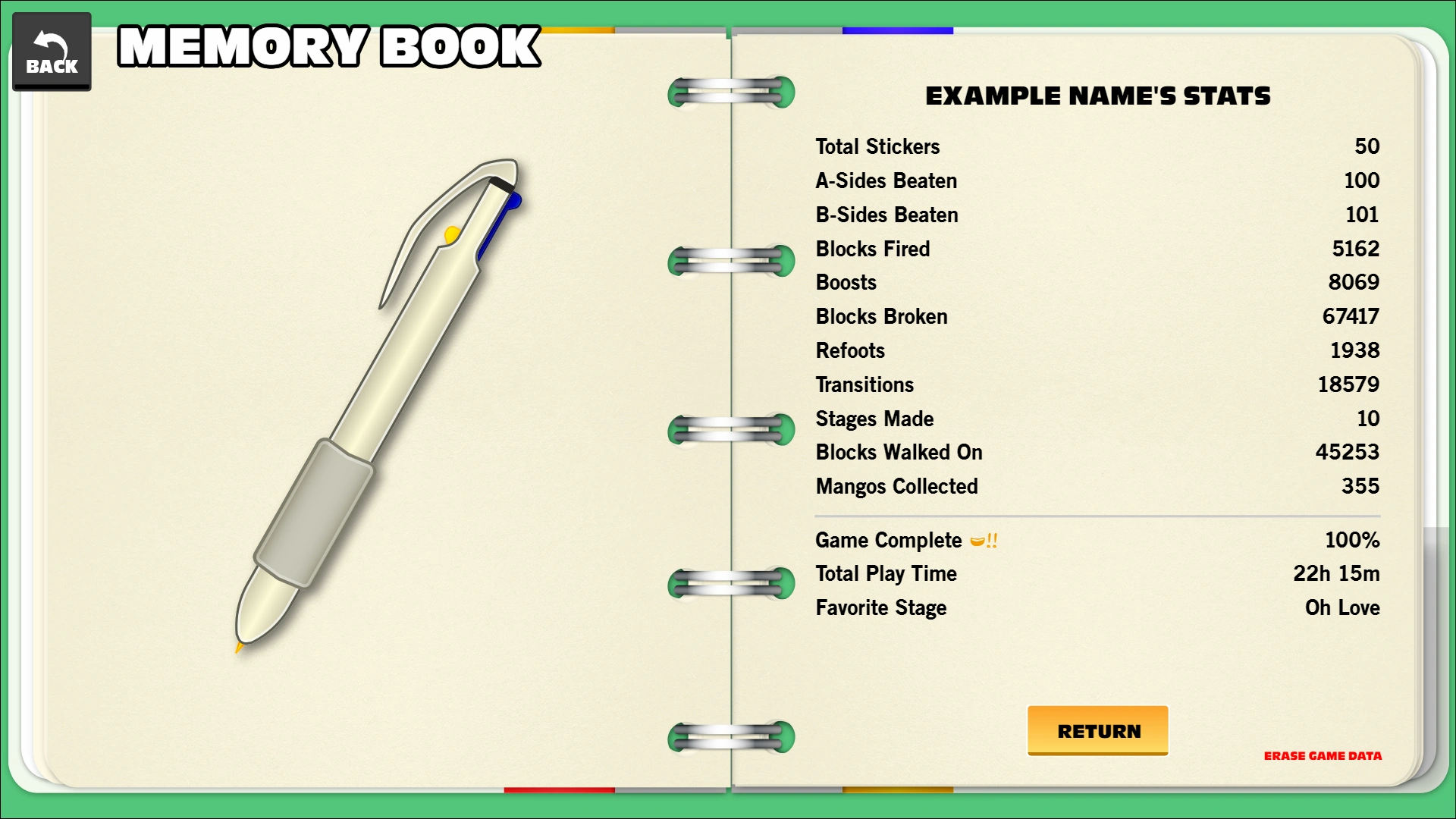 - B-Sides Beaten: Number of B-Side levels the player has completed.