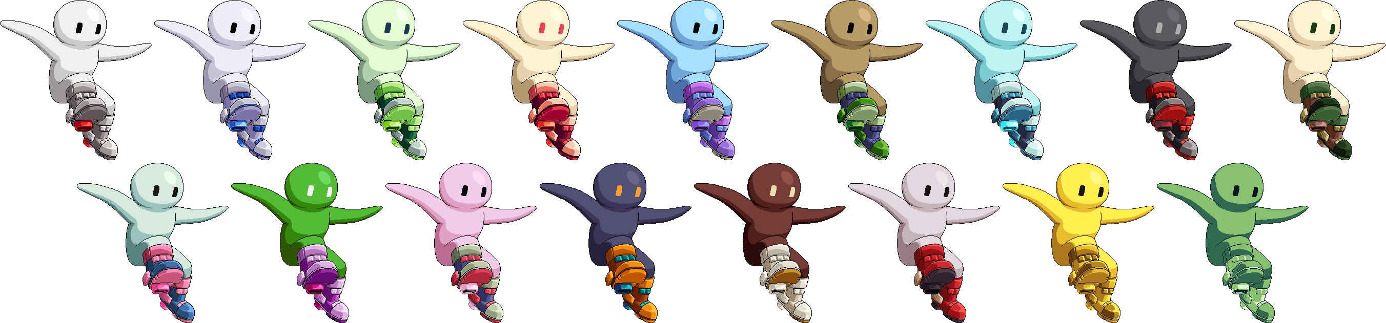 | Neutral attack | Strikes with his arms twice, then flails his arms forwards, ending by swinging both down. Based on the Arm Spin Style from Downwell. | 2 |
