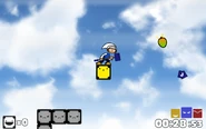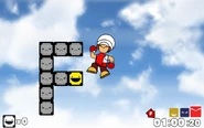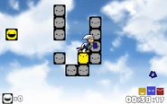 The level starts on a collection of Steel Blocks in the shape of the letter Y, with a Yellow Block in the place of the top left block. The player must break this block with Fury and place it with Yeah in order to cross over the wall to the upper right and reach another collection of Steel Blocks in the shape of the letter J. There is a Yellow Block in the bottom right corner of these Steel Blocks that must be broken with Fury and placed with Yeah to reach the next collection of Steel Blocks, which is in the shape of the letter F. There is a Yellow Block on the lower bar the collection, and like before, the player must break it with Fury and then place it with Yeah to reach the mango to the upper right.